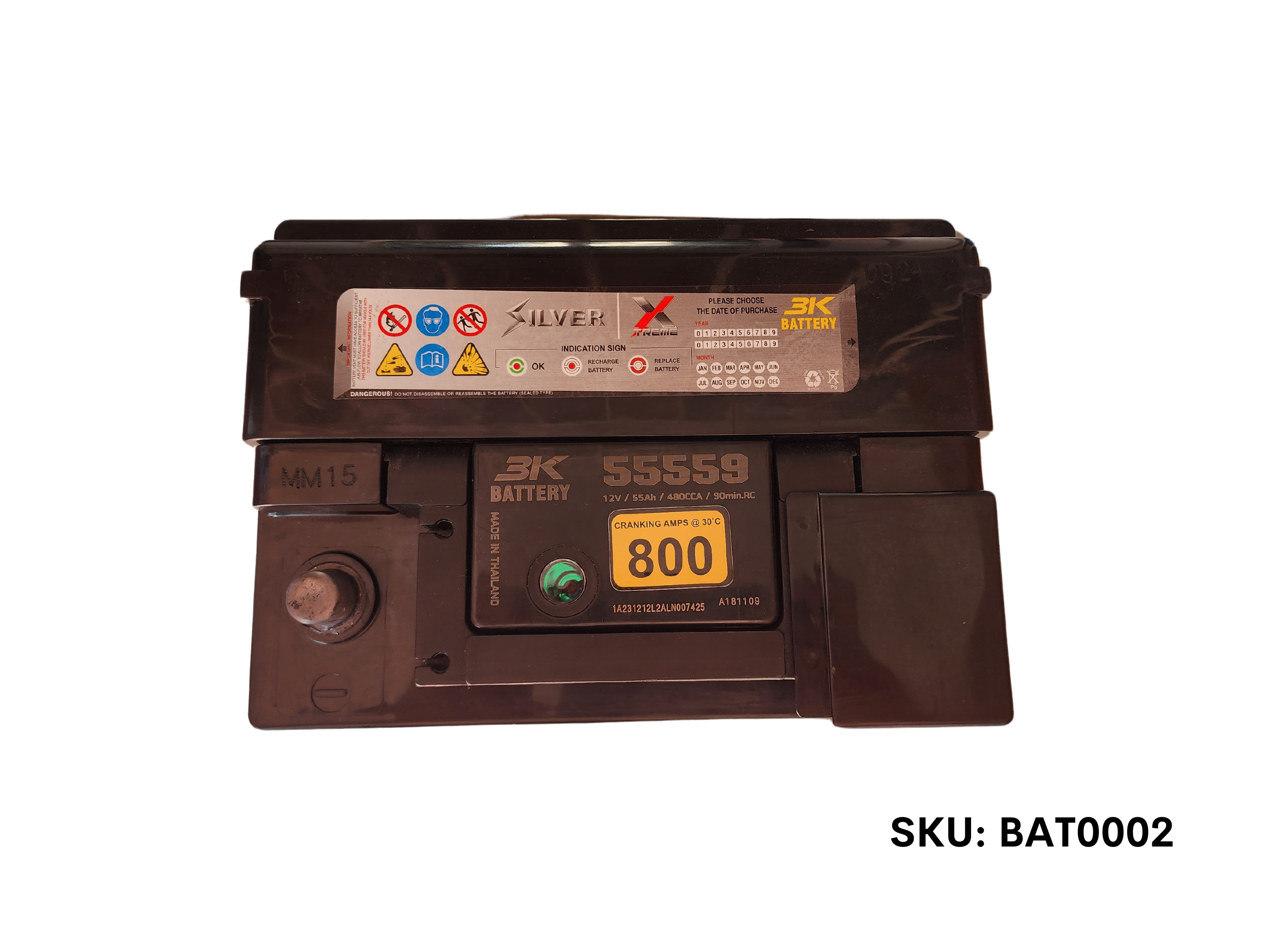3K Battery – 3K DIN55 55559 SILVER BATTERY 12V/55AH, 480 CCA, 90min.RC CRANKING AMPS@30?C 800 Warrenty- 3 Years in Gasoline Engine, 2 Years in Hybrid. Warranty fullfiled by third party.