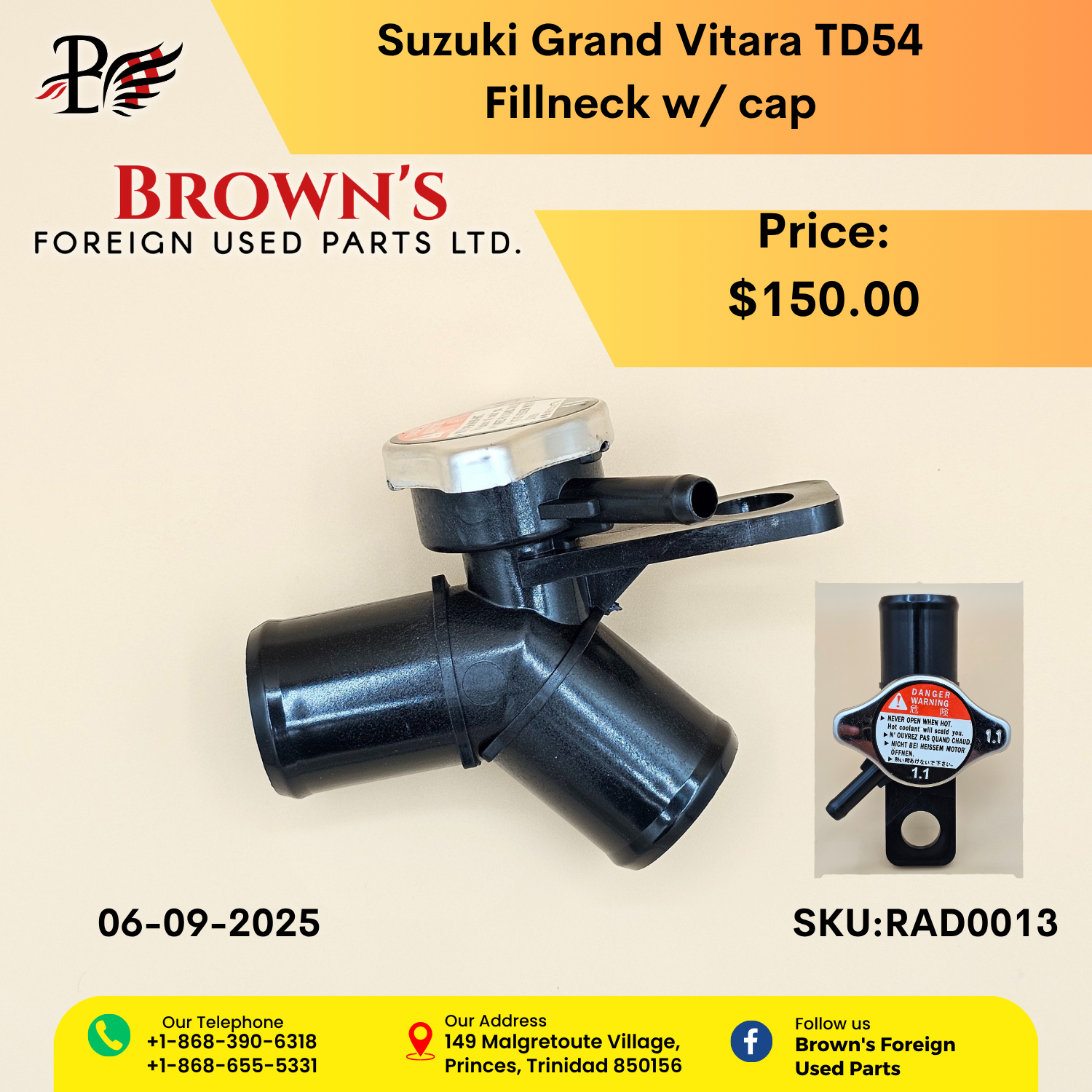 Suzuki Grand Vitara TD54 (Police Model) Fillneck. Radiator coolant filler neck with radiator cap.